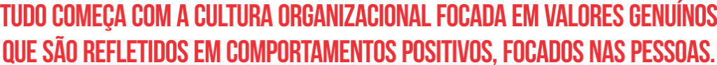 Tudo começa com a Cultura Organizacional focada em valores genuínos que são refletidos em comportamentos positivos, focados nas pessoas. Não é fácil mudar o rumo de um grande navio. É preciso primeiro definir a nova rota e ir, pouco a pouco ajustando o leme, as velas, sabendo que tempestades sempre estarão ali, incomodando o rumo da viagem.