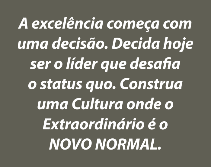 Acontece que, para se alcançar a verdadeira excelência, para ser extraordinário, é essencial reconhecer que essa zona de conforto existe e, corajosamente, decidir superá-la. Não é fácil (e nunca foi) e somente com uma liderança disposta a mudar o rumo e a velocidade do navio, uma liderança realmente inspiracional é que este mindset será atingido.